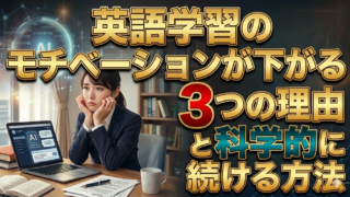 社会人の英語学習でモチベーションが続かないのは意志の問題ではありません。心理学の研究をもとに、モチベーション低下の3つの根本原因と、科学的に証明された今日から実践できる維持法を解説します。