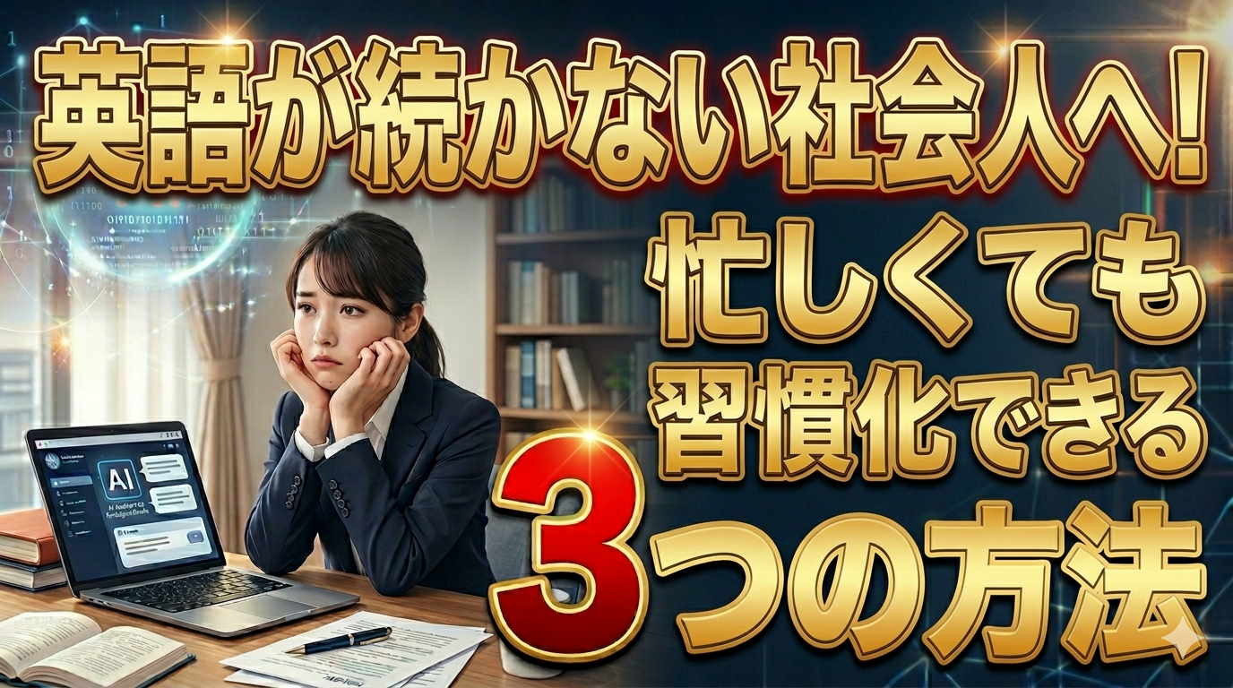 この記事では、忙しい社会人が英語学習を続けられない本当の理由と、今日から実践できる現実的な習慣化のコツを3つお伝えします。「また失敗するかも」と不安に思っている方にこそ、読んでいただきたい内容です。