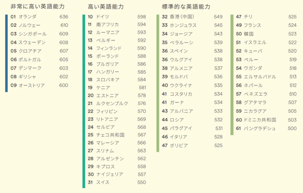 早速、英語能力指数(EF EPI)のランキングを見てみましょう。