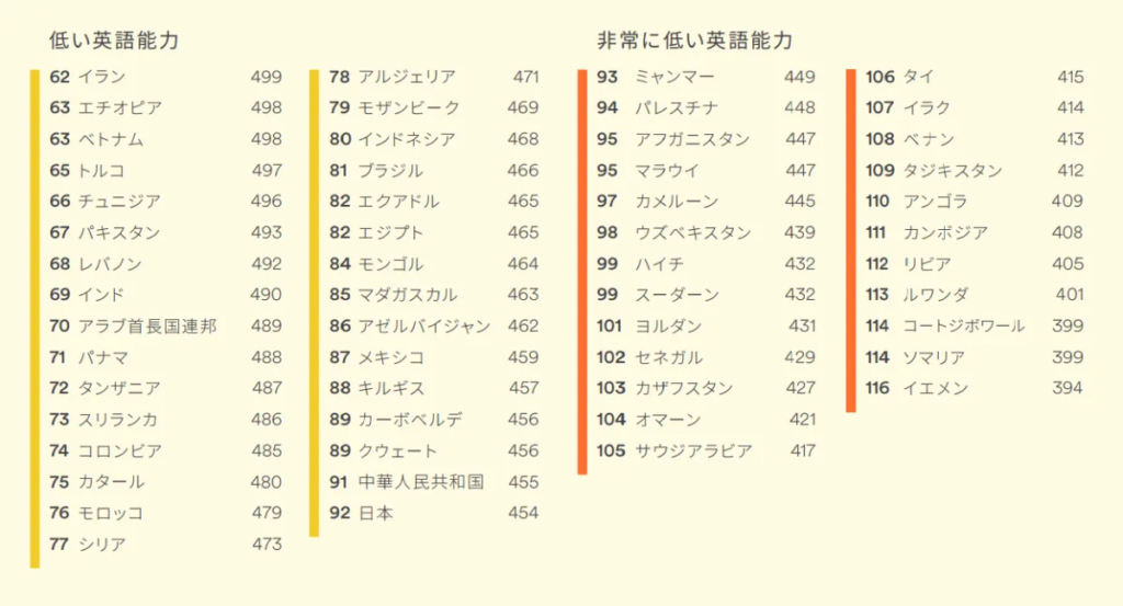 • 日本の英語能力指数(EF EPI)ランキングの現状(例:2023年の順位)
